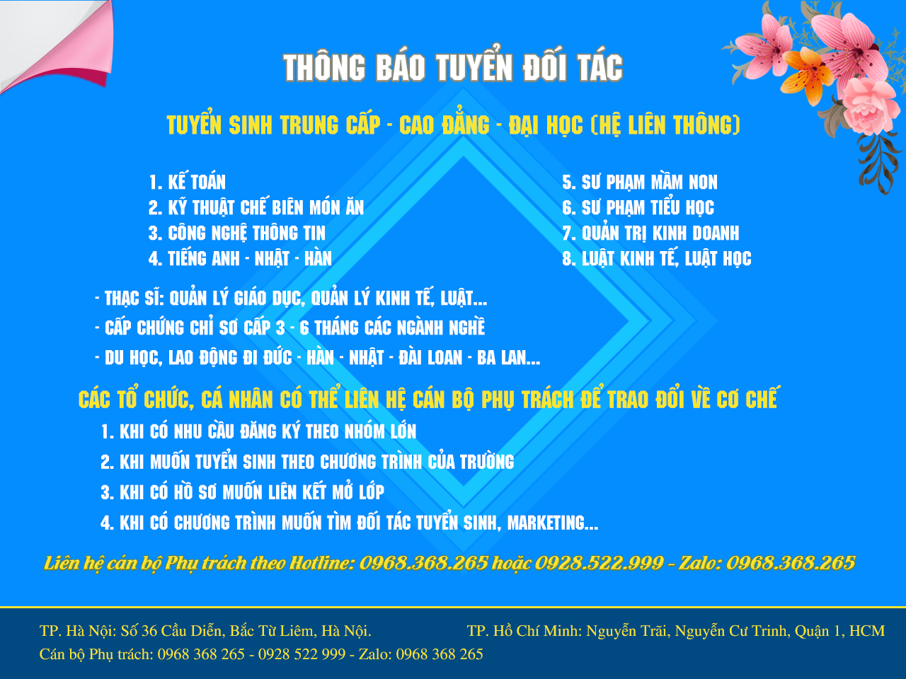 Có nhiều địa điểm hỗ trợ tuyển sinh và tiếp nhận hồ sơ trên toàn quốc. Tuy nhiên để đảm bảo quyền lợi của...