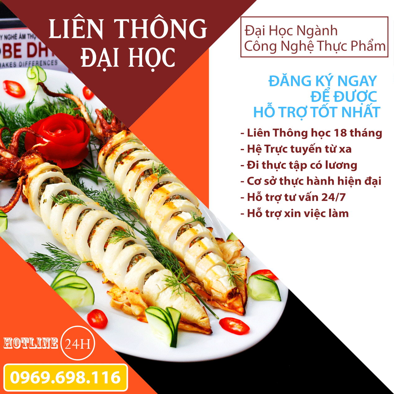 Thông báo tuyển sinh lớp Đại học và Liên thông Đại học ngành Công Nghệ Thực Phẩm nhanh nhất chỉ từ 18 tháng, đáp ứng nhu cầu cho tất cả mọi người có nhu cầu học lấy bằng trên toàn quốc. Với chương trình đào tạo và phòng thực hành dạy Nấu ăn hiện đại bậc nhất theo tiêu chuẩn cuộc thi Masterchef Việt Nam. Có chương trình đào tạo Cao đẳng Nấu ăn (ngành Kỹ Thuật Chế Biến Món Ăn) lấy bằng chính quy tại trường. Nhà trường có nhiều địa điểm tuyển sinh và tiếp nhận hồ sơ trên Toàn quốc đáp ứng nhu cầu học tập của học viên. Ngoài ra, nhà trường có chương trình đào tạo Cấp chứng chỉ Nấu Ăn Sơ cấp Ngắn hạn 3 - 6 tháng cho ai có nhu cầu.